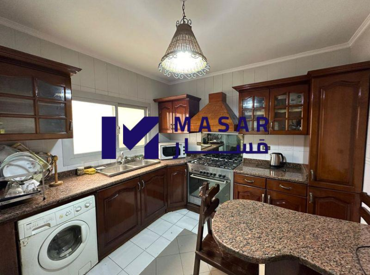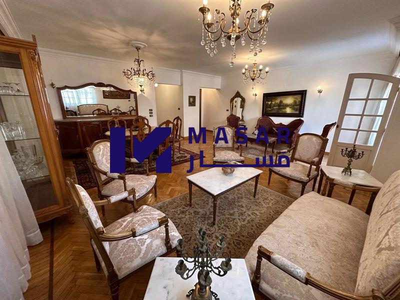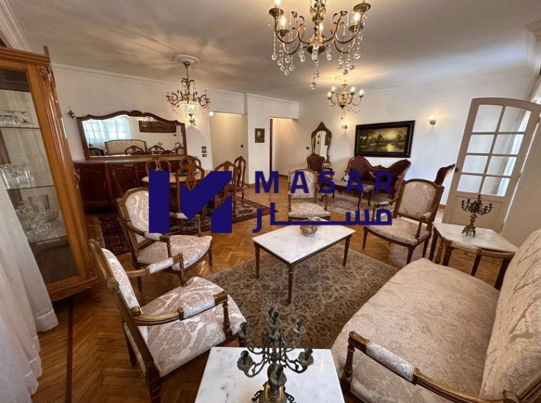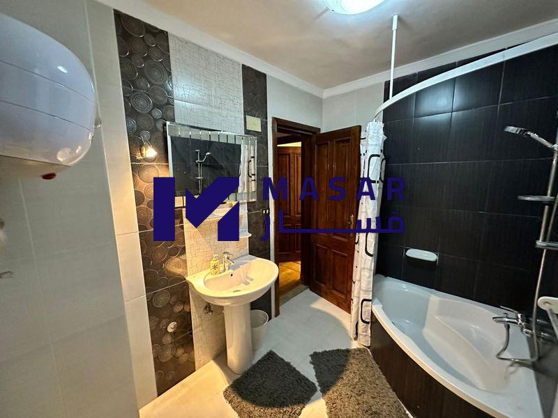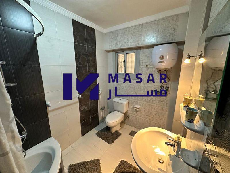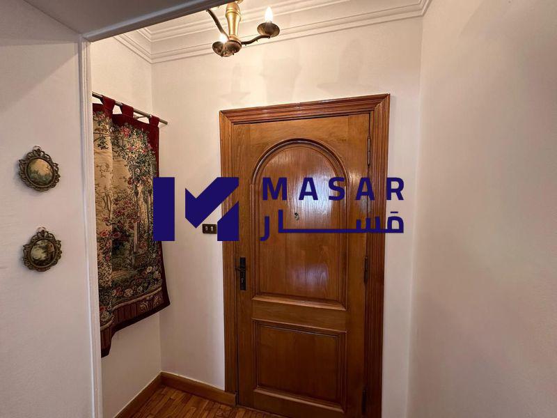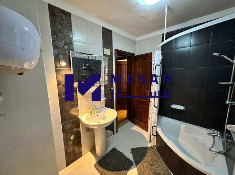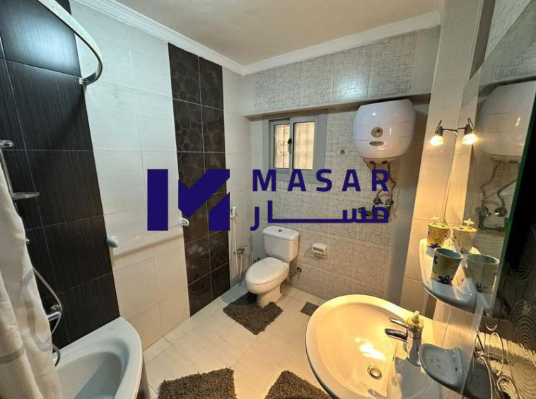Details: 3-piece reception, separate living room with air conditioning, two main bedrooms with air conditioning, two bathrooms, a kitchen, two balconies, it has a place in the garage, a water meter separate from the building with a card, and an electricity meter outside, furnished.